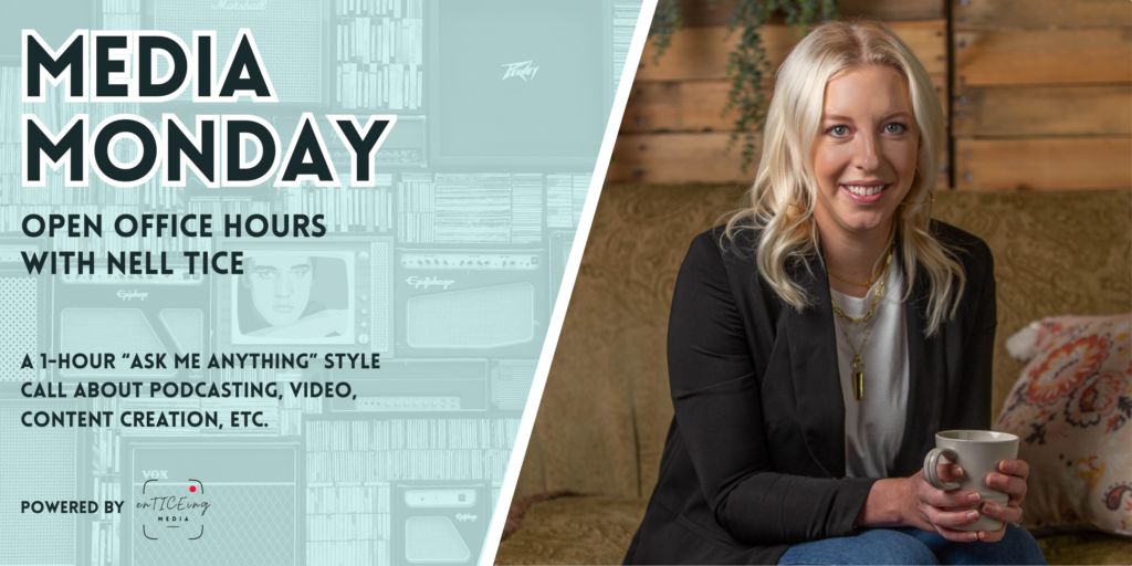 Struggling to launch your podcast? Nervous about getting in front of the camera? Or maybe you’re simply looking for a little guidance to feel more confident in your media journey. That’s exactly why we created Media Mondays, a FREE, virtual open office hour hosted every 6 weeks by Nell Tice of enTICEing Media .